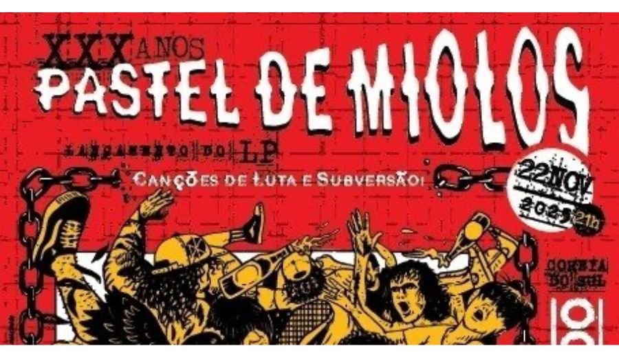 PASTEL DE MIOLOS power trio baiano de Punk Rock Hardcore que, em 2025, completou 30 anos de atividades ininterruptas. Neste ano de aniversário, gravaram novo álbum que será lançado nos formatos físicos (CD, CASSETE e LP) e digital. Nesse show do dia 22.11.2025, será lançado oficialmente o Vinil/LP “Canções de Luta e Subversão!”.