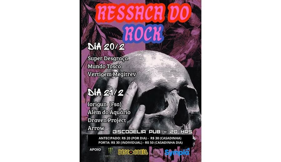 ❕Ressaca do Rock é um evento dedicado à energia crua do rock, reunindo bandas autorais uma mistura, indie, metal, industrial, alterna rock.